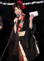 ミステラさんからは、今年も例会を盛り上げて行きたいという強い想いが伝わってきましたので1年間とても楽しみです。 続いて司会のパートナーである、五十嵐ひとみさんが登場されました。新春をイメージした素敵なドレスを身に纏いオープニングのトークで盛り上げてくれました