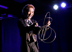 5番手は、サイクロンZさんです〜なかなか手に入らない珍しいマジックを次から次へと披露してくださいます。リングマジック、フォークとスプーンギミック、なぜか爪楊枝入れまで飛び出すこともあり、笑。