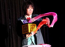 次に登場したのは渋谷駿さん。 赤いバラを持って登場。そのバラがシルクに変化。アシスタントのまなかさんと、さわやかにそして華麗に美しく演じられていました。本格的なスライハンドを堪能できました。
