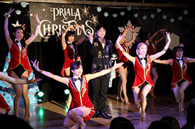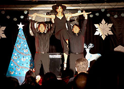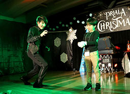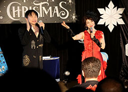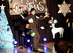 赤いバラの花を使っての華麗な演技や、ゾンビボール、デイライトでの演技。最後には黒い衣装から赤い衣装へのドレスチェンジも決まり、クリスマス例会にピッタリの素晴らしいステージ演出をしてくださいました。
