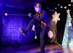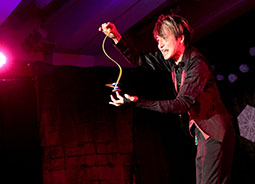 カラーヨーヨーを使っての演技も照明に照らされて、とても鮮やかでした。両手に持ったヨーヨーを交差しながらという難易度の高い演技も見事に大成功!
