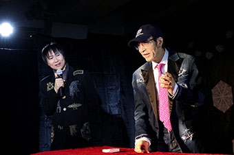 今回の会長マジックは、なん とマジックグッズクリエーターのやまひでさんが、荒木会長のオファーにより制作したグッズを使ってのマジックでした。