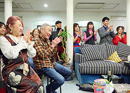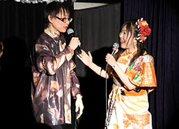司会進行は、プリあらグッズ担当のケンジローさんと治子さん。乾杯は、日本を代表するコメディアン、お笑い界の大スター 松元ヒロさんが務めて下さり、大盛り上がりです!