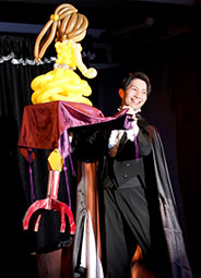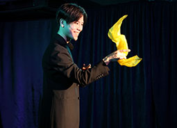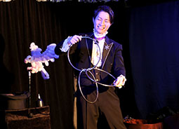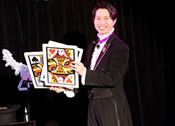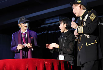 芸人の松元ヒロさんによるユーモアたっぷりのトーク、サンペイさん・ヨンペイさん親子のコントとなぞかけ、タジマジックさんの不思議なメンタルマジック、やまひでさんは手作りの左馬の置き駒を使ったマジック、魔耶一星さんも即席カードマジック、ヒラクさんによる世界一のヨーヨーパフォーマンス。笑いと感動で包まれました。