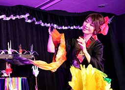 ハロウィンを彷彿させる曲に合わせて、ハロウィンカラーのステッキやシルクを使った鮮やかなマジックを披露してくださいました。