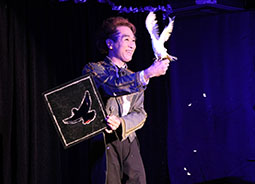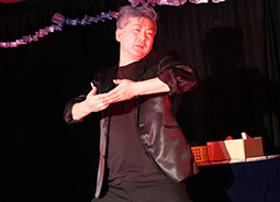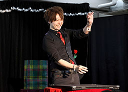 次に登場したのは渋谷駿さん。 赤いバラを持って登場。そのバラがシルクに変化。アシスタントのまなかさんと、さわやかにそして華麗に美しく演じられていました。本格的なスライハンドを堪能できました。