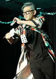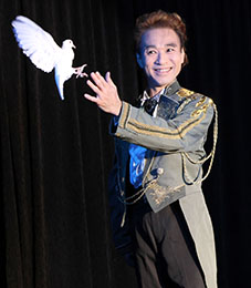 登場と同時に大きな拍手が。アップテンポの音楽に合わせ、ダンスをしながらマニピュレーション!ステージを所狭しと動き回り、ステージはもとより、客席までカードやら紙吹雪やら色々なものを飛び散らかせ、大盛り上がり! 何回衣装チェンジしたのでしょうか?あまりの激しいステージで日記用のメモの手が止まるほど圧巻のステージ、笑