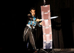 ハサミを持ち、紙を切ったり破いたり投げたりと、まさになげやりのキレ芸状態。ふざけているのか真剣に演じているのか、正直何をやっているかわからないでいたのだが、観ているうち、これはコメディ風の連理の紙を演じているのに気がつきました。サイクロンZさんらしい楽しいパフォーマンスでした。
