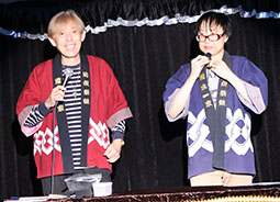 司会は、ミステラさんとタジマジックさん。お二人は、ゴールドの刺繍で「荒木一家」と縫い込まれたカッコいい法被姿で登場です。
