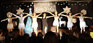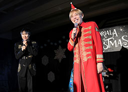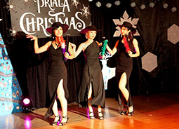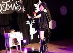 赤いバラの花を使っての華麗な演技や、ゾンビボール、デイライトでの演技。最後には黒い衣装から赤い衣装へのドレスチェンジも決まり、クリスマス例会にピッタリの素晴らしいステージ演出をしてくださいました。