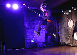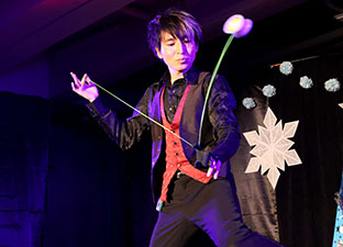 カラーヨーヨーを使っての演技も照明に照らされて、とても鮮やかでした。両手に持ったヨーヨーを交差しながらという難易度の高い演技も見事に大成功!