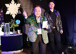 今回の会長マジックは、なん とマジックグッズクリエーターのやまひでさんが、荒木会長のオファーにより制作したグッズを使ってのマジックでした。