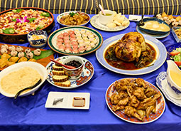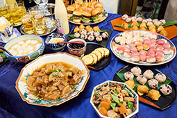 ボリューム満点のローストチキン、島根の新鮮な魚を使った手毬寿司、ともみファーム(完全オーガニック)の栄養たっぷり野菜を使った筑前煮、バンズから手作りのミニハンバーガー、ほうれん草カレーと手作りナン、から揚げにポテト、とろとろの柔らかい きなこ餅とからみ餅、揚げたての天ぷらに、スパイシーなタイカレー、彩り鮮やかなフィンガーフード、美容と健康に良い紅白なますや黒豆、お寿司、伊達巻…などなど、、