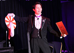 芸人の松元ヒロさんによるユーモアたっぷりのトーク、サンペイさん・ヨンペイさん親子のコントとなぞかけ、タジマジックさんの不思議なメンタルマジック、やまひでさんは手作りの左馬の置き駒を使ったマジック、魔耶一星さんも即席カードマジック、ヒラクさんによる世界一のヨーヨーパフォーマンス。笑いと感動で包まれました。